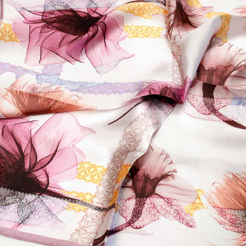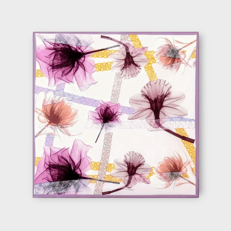 Šilkinė skarelė „Žiedų nata” 53x53cm